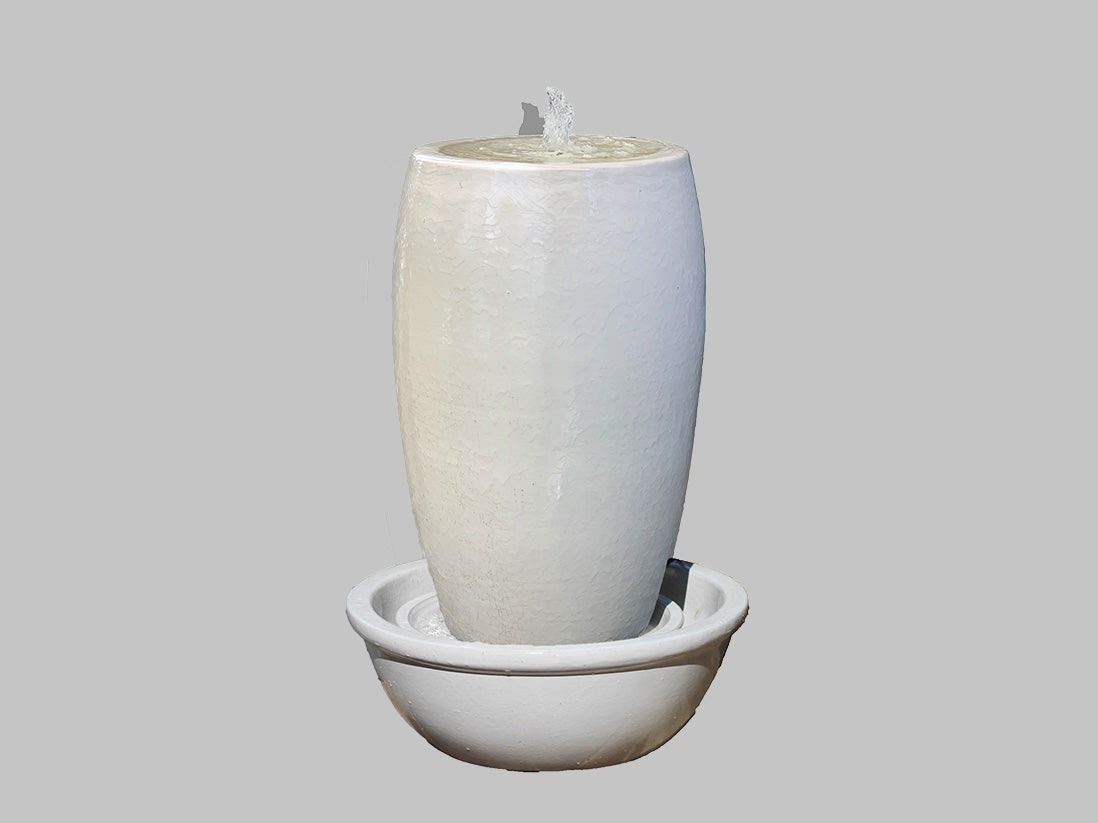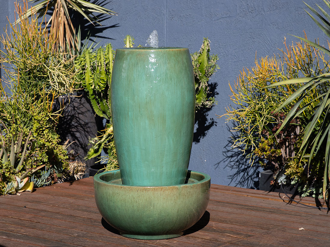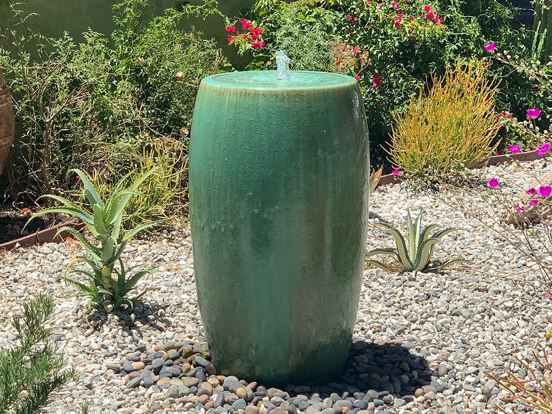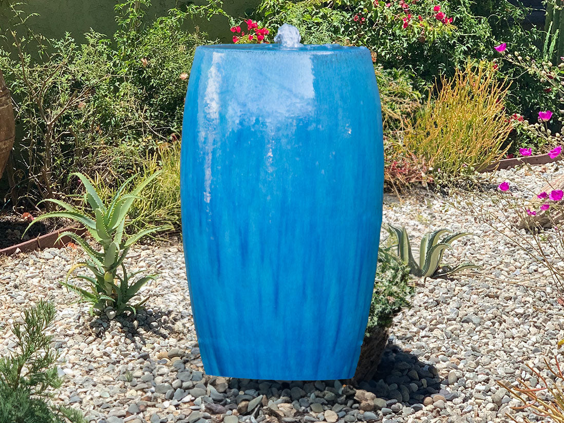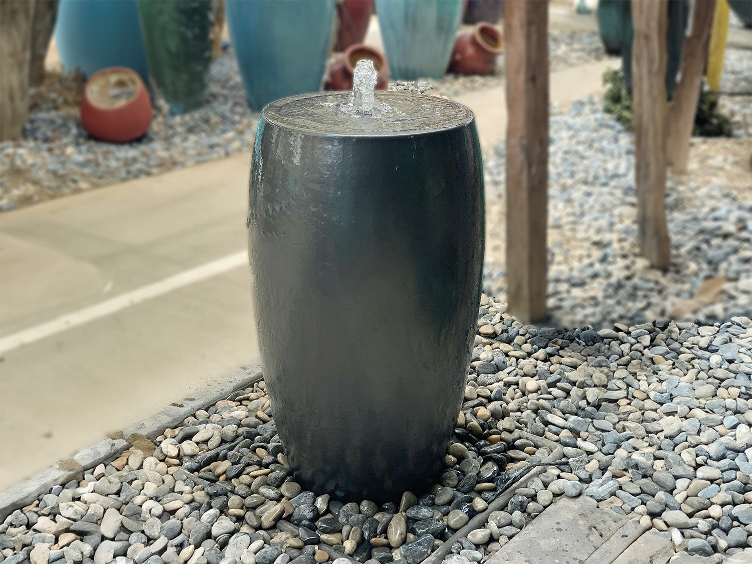 High-fired ceramic makes the drum shape fountain weatherproof. Hand-glazing gives each fountain unique color and texture. This material makes the fountain stronger, more durable, and easier to maintain.