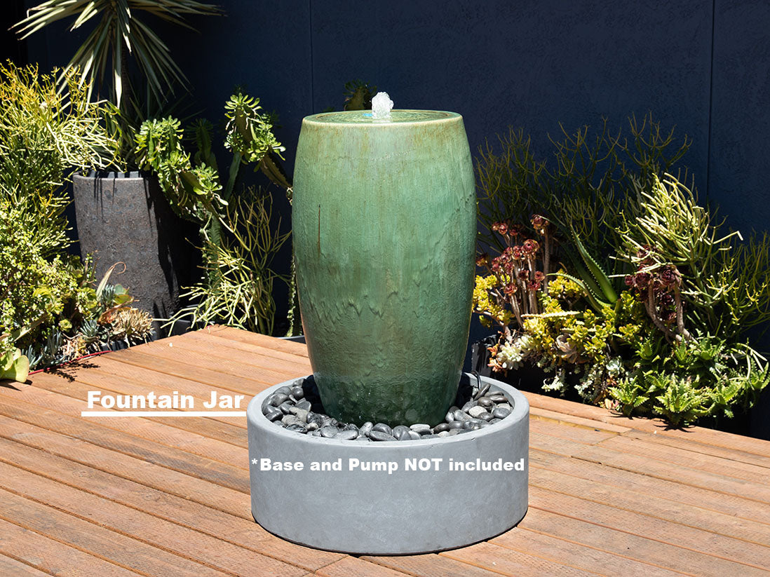 Fountain Jar with Color Base: A round stoneware piece will be delivered along with the fountain for base.