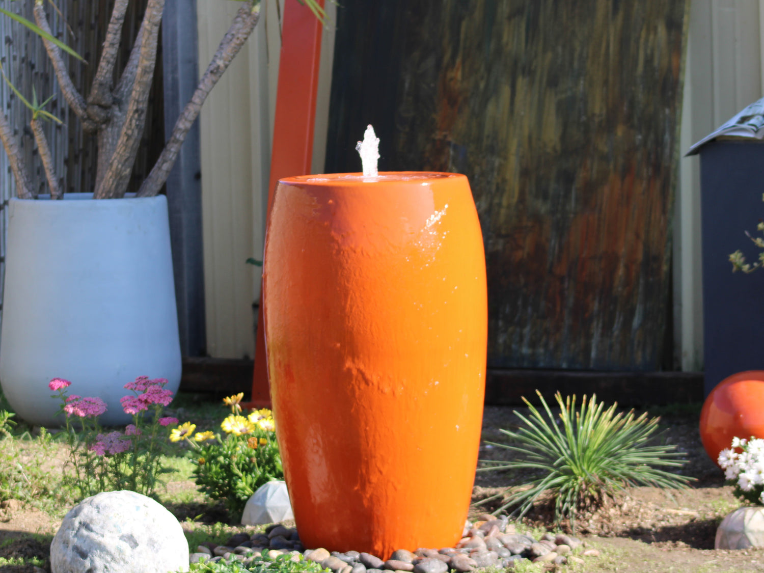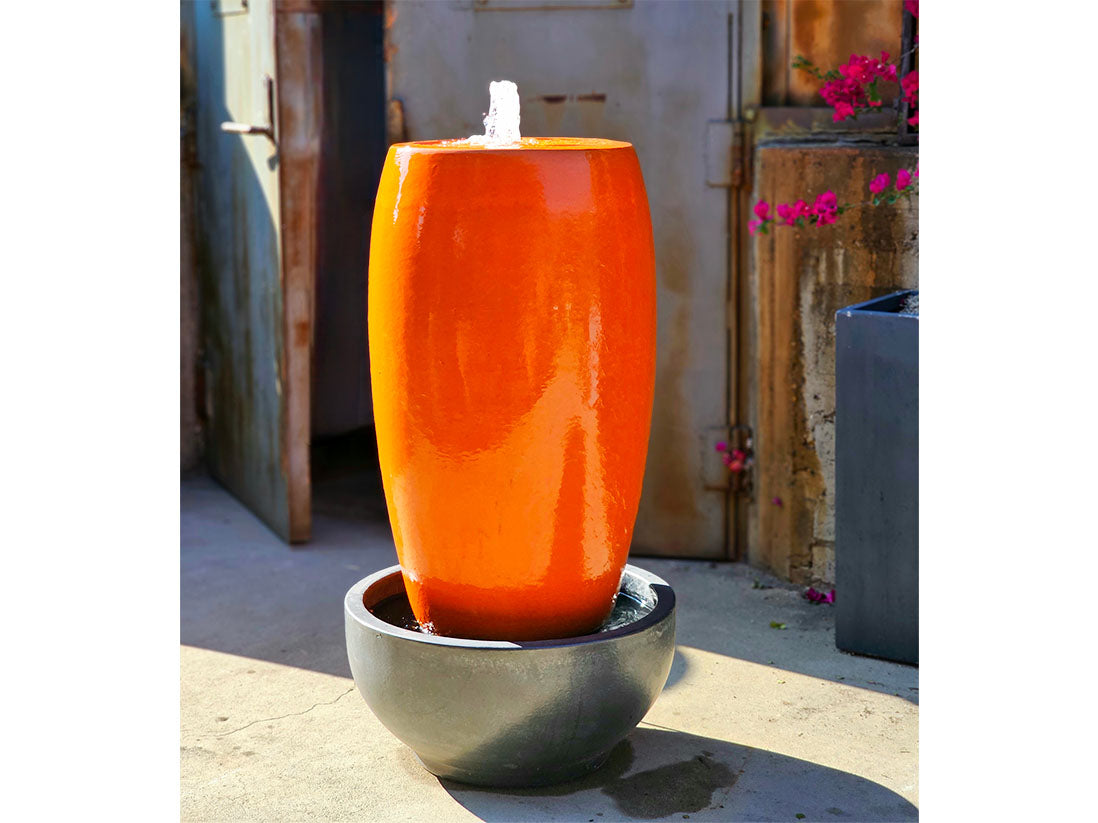 Fountain Installation VideosDrum Shape Fountain By Plantatorem - 20.0" D x 35.0" H / Orange / Fountain Jar is backordered and will ship as soon as it is back in stock.