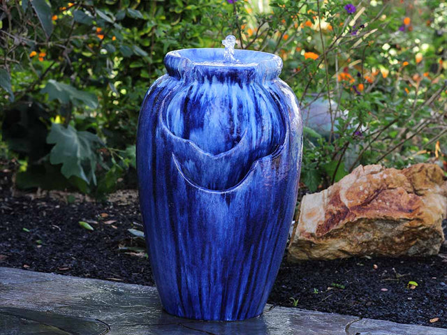 You can order the fountain thatβs available in different sizes and decorate your outdoors with blossom blue glazed tea garden fountain making the scape an elegant attraction.
