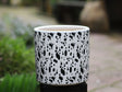 Cylinder Floral Stamped Planter By Plantatorem - Black Pansy / 8.0" D x 8.0" H is backordered and will ship as soon as it is back in stock.
