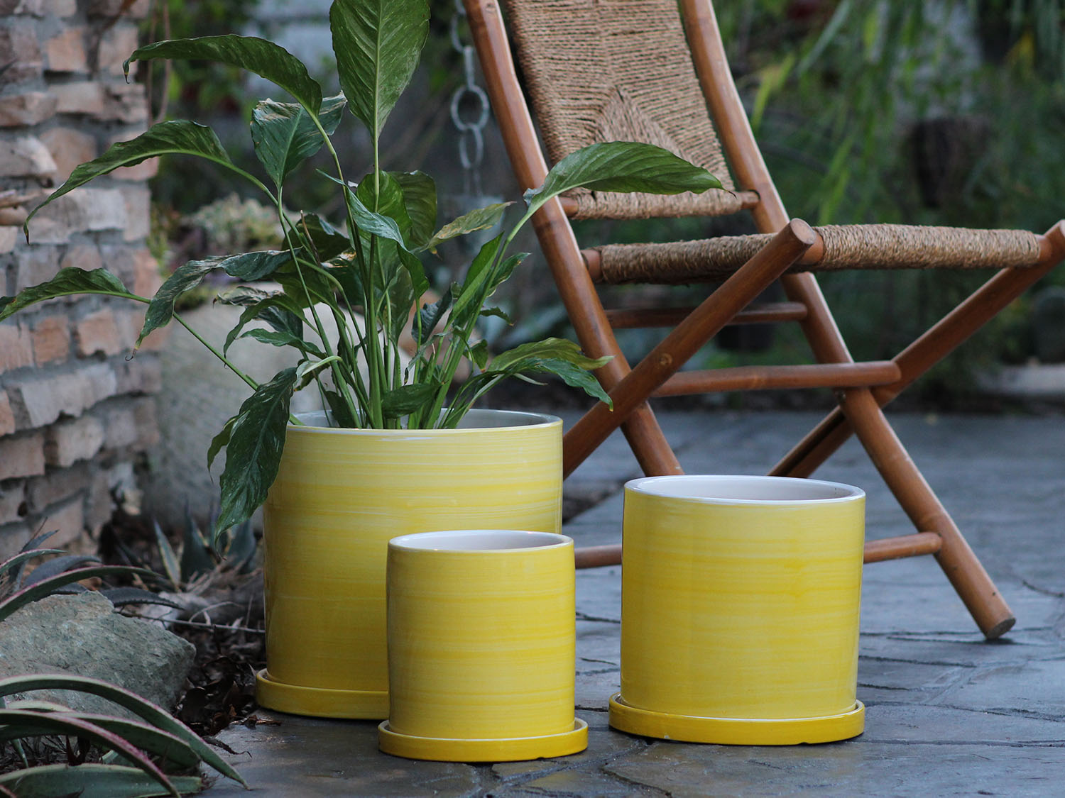 - • Drainage: Yes, with a matching saucer