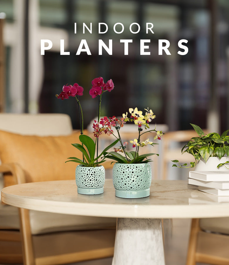 Our colorful indoor pots are art, not just planters. The Melrose Modern Planter's glossy sheen and the Rock Form Grower Pot's textured finish enhance elegance. Some people do prefer large indoor planters, and we do provide those as well.