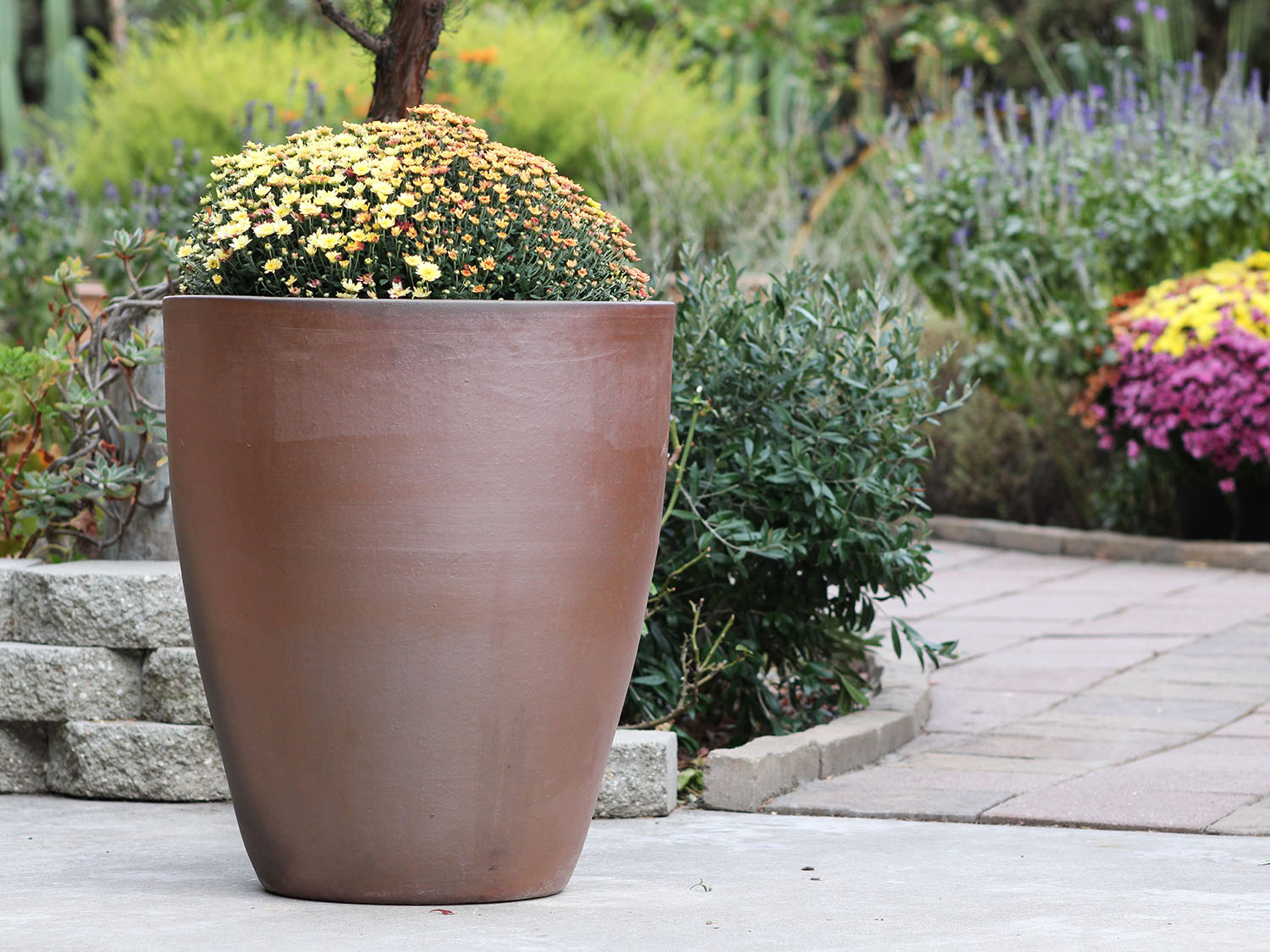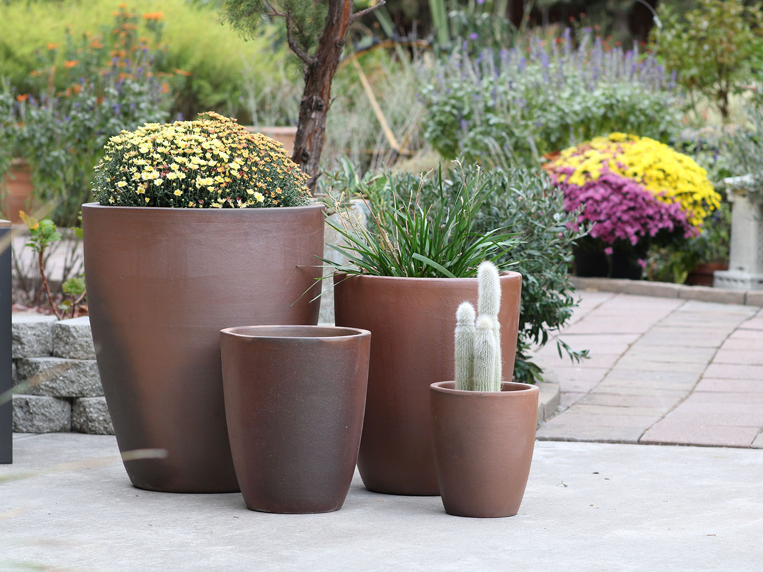These large outdoor garden pots are elegant with wide rims and tapered bases giving stylish look to the surrounding. Plantatorem offers the clay planters large enough to make a statement in your outdoor scape making it a piece of attraction and smaller ones to suit your backyard and balcony. These clay pots are available inn different sizes: Large (24.0" D x 27.5" H), Medium (18.5" D x 21.0" H), Small (13.5" D x 16.5" H), and Extra Small (10.0" D x 12.0" H). The Pottery Planters in Extra Large Size can hold the shrubs, small trees, cascading florals and a lot more. The cone silhouette offers a modern touch to the traditional terracotta pots.