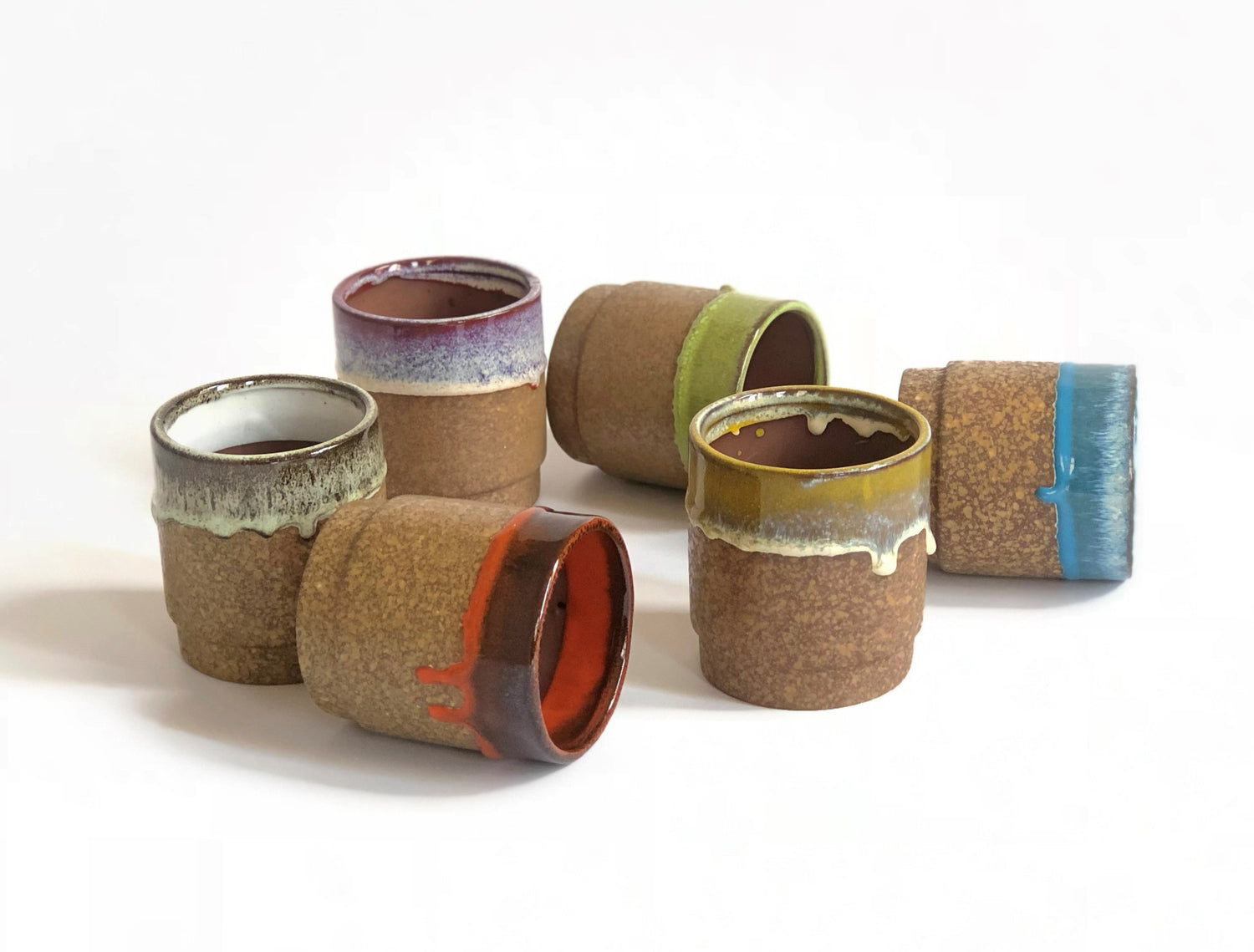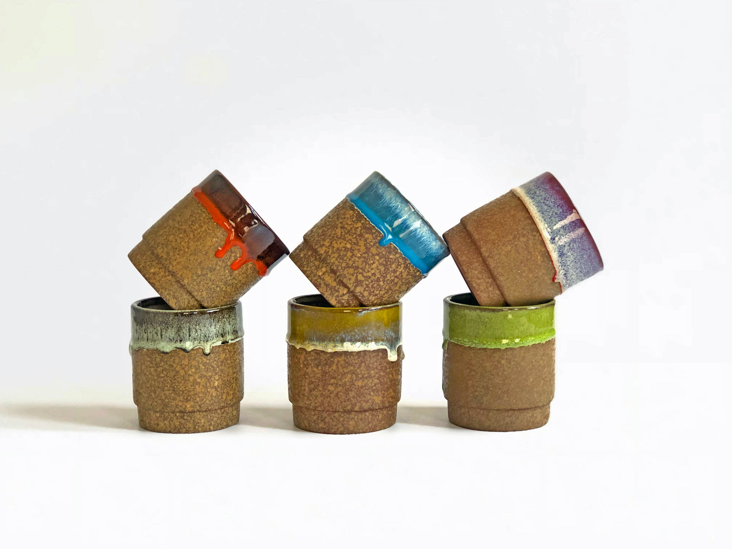 Floret Succulent Baby Cup, mixed drip glaze, 3.5"x4.0", sold in case of 12.