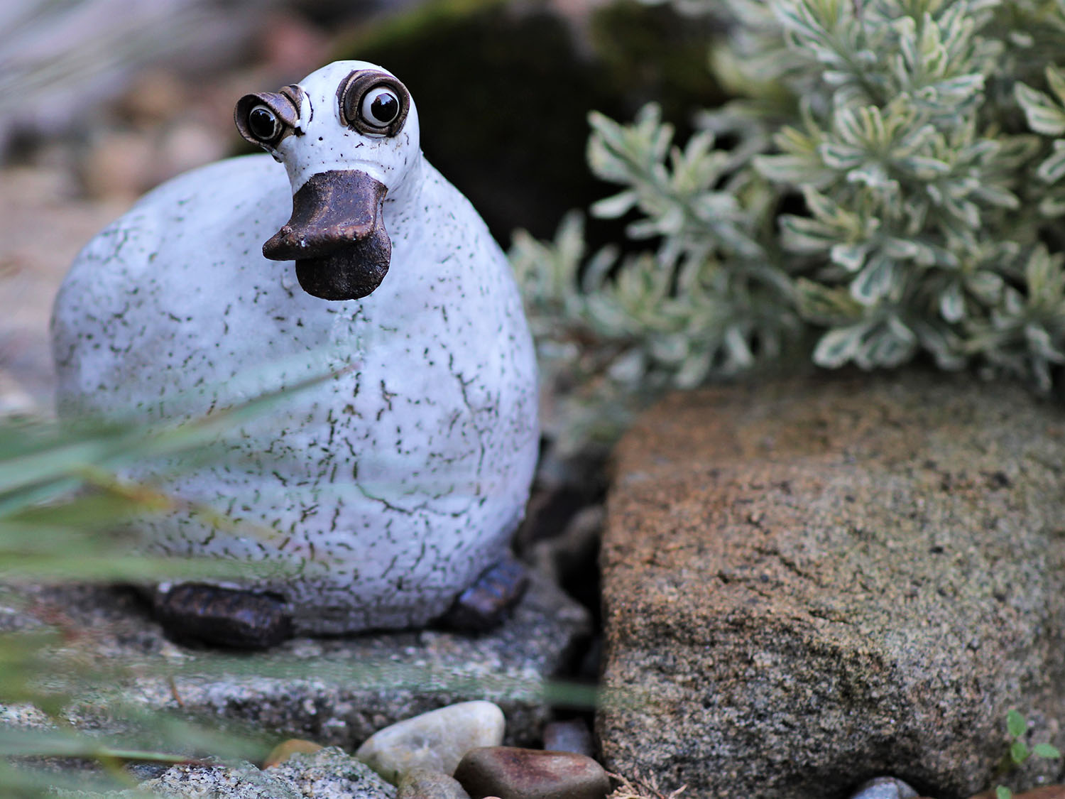 The neutral colors work well with plants, rocks, and other ceramic garden sculpture or outdoor duck decor, so it feels right at home no matter your setup.