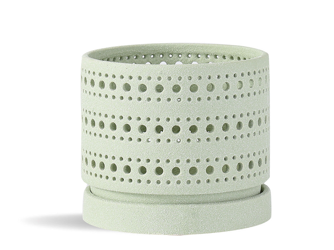 This ceramic orchid pot comes with a sandy texture and the saucer is attached. It comes in many colors such as Milky White, Sage Green, and Canyon Clay, and offers a soothing palette that integrates seamlessly into any decor style.