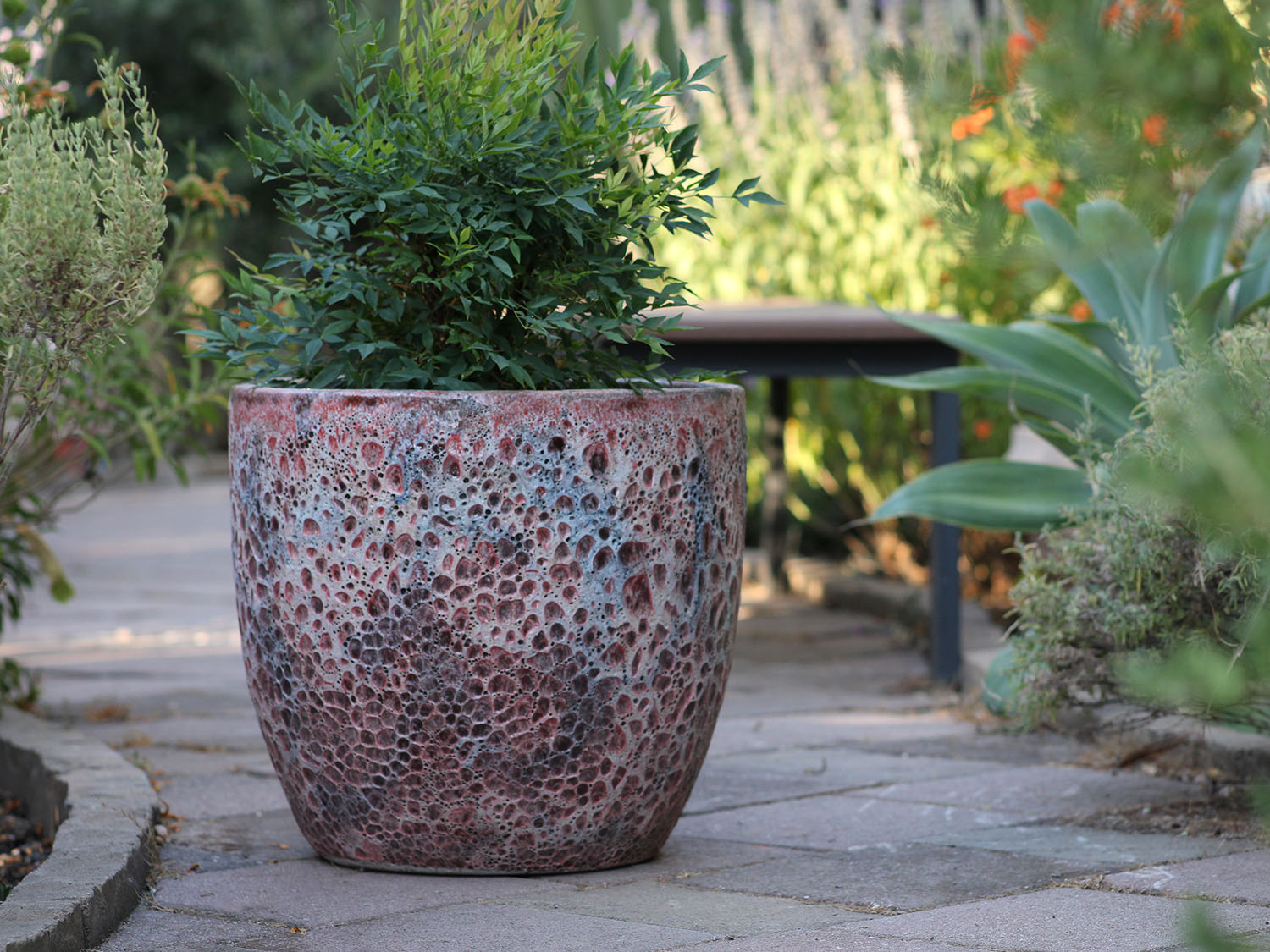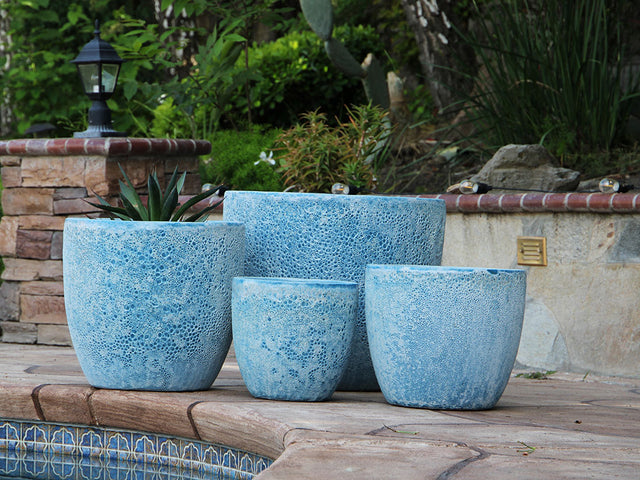 High-quality built-up makes these pots easy to maintain. A gentle, wet cloth can remove dirt and debris. Avoid aggressive chemical cleaners to retain coral's bright luster. Although they can tolerate typical weather, cover the pots during extreme weather to keep them in good condition.