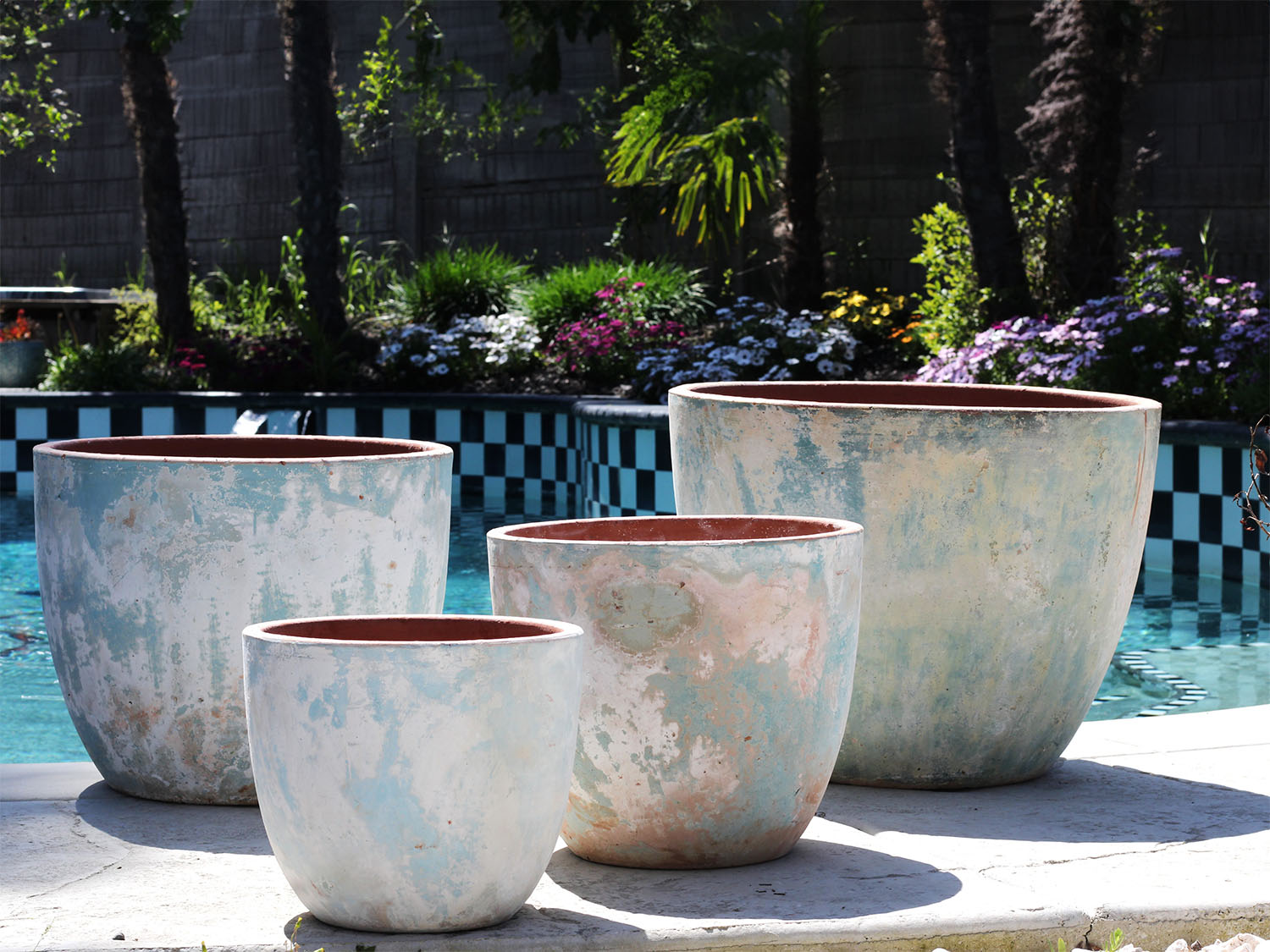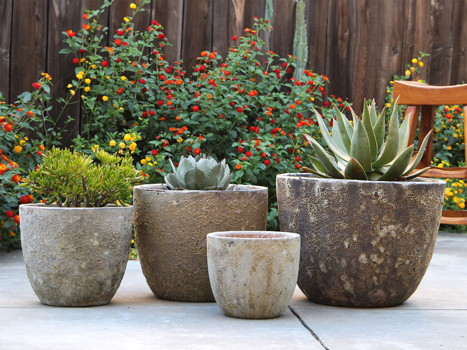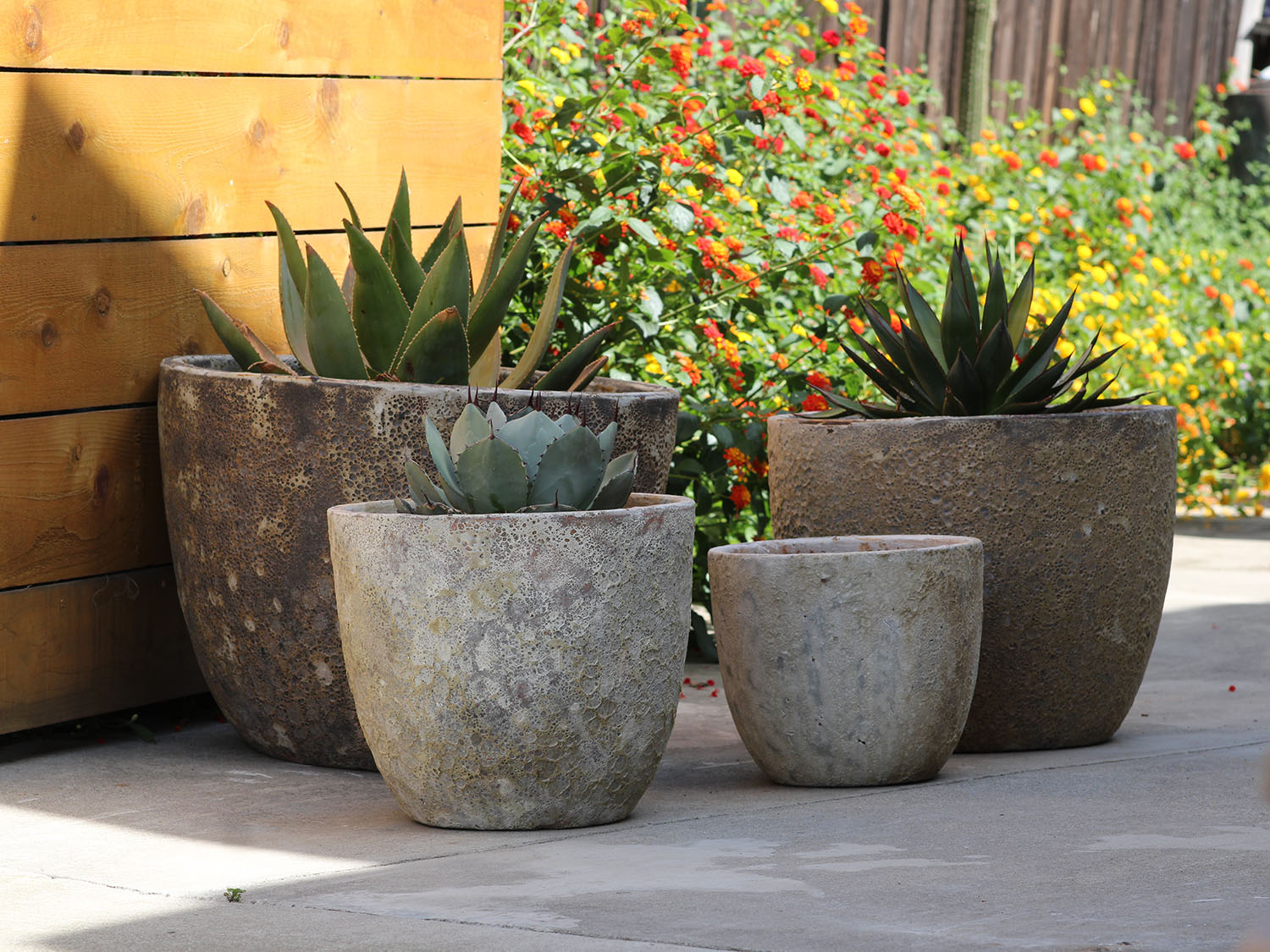 Finished distressed with grooves and ridges for added texture, the Parco Rimless outdoor planters bring an authentic coastal feel to your outdoor space and help create stunning displays of shrubs, mounds, and thriller plants.