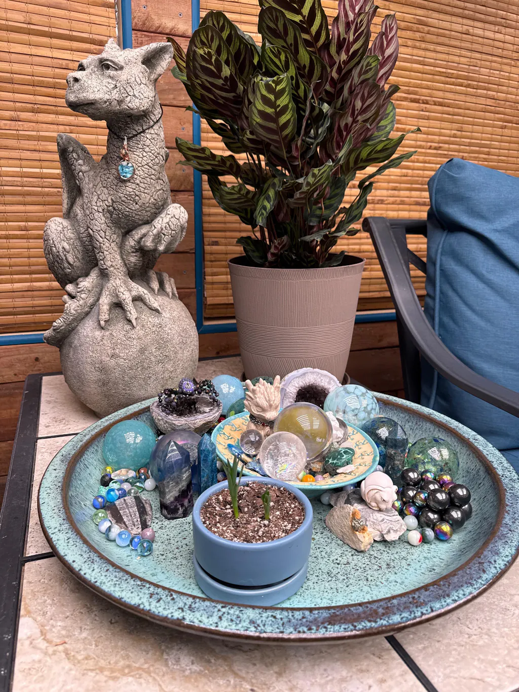 Round Saucer 23" By Plantatorem - Falling Aqua is backordered and will ship as soon as it is back in stock.