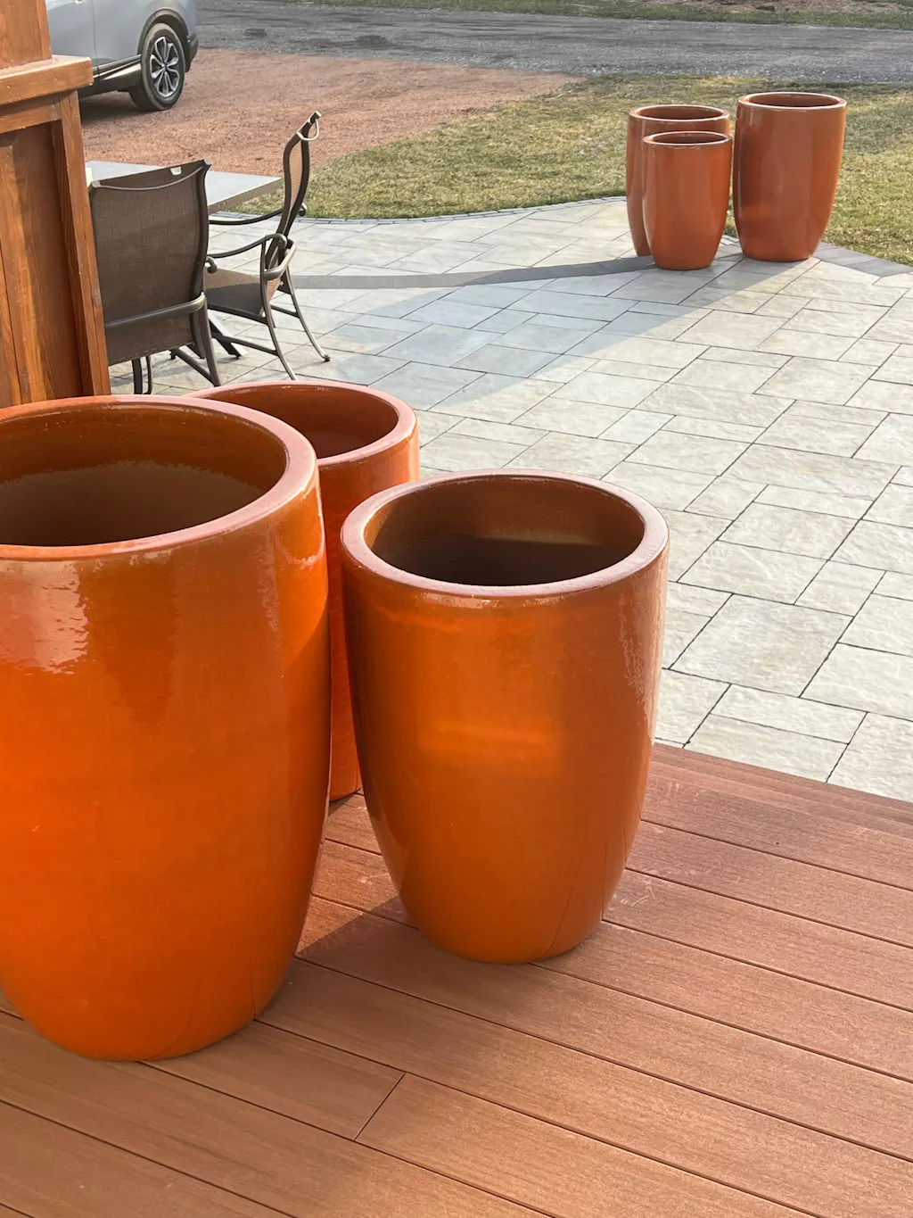 Tall Barrel Planters By Plantatorem - Set of 2 / Orange is backordered and will ship as soon as it is back in stock.